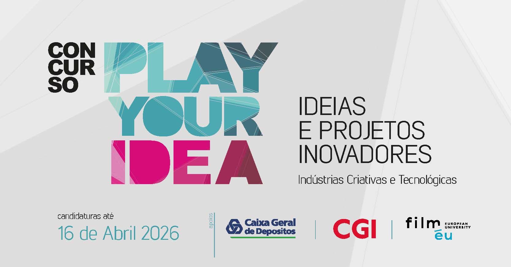 O PLAY YOUR IDEA 2026 aceita candidaturas em áreas como: