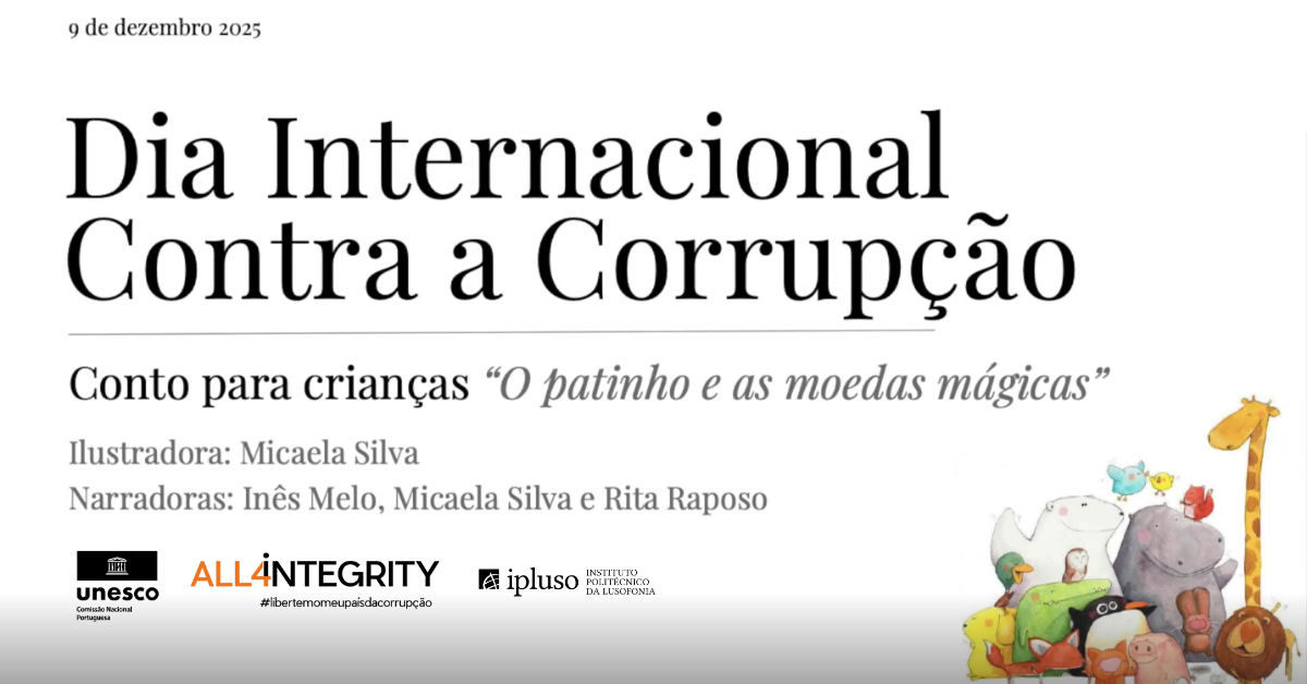 A Escola Superior de Educação da Lusofonia assinalou o Dia Internacional contra a Corrupção (9 de dezembro), em parceria com a Associação All4Integrity, através da realização de ações de sensibilização junto de diversas turmas. Foram igualmente desenvolvidas várias atividades que evidenciam a criatividade, o pensamento crítico e o envolvimento académico dos estudantes, resultando num conjunto de conteúdos ricos e diversificados.